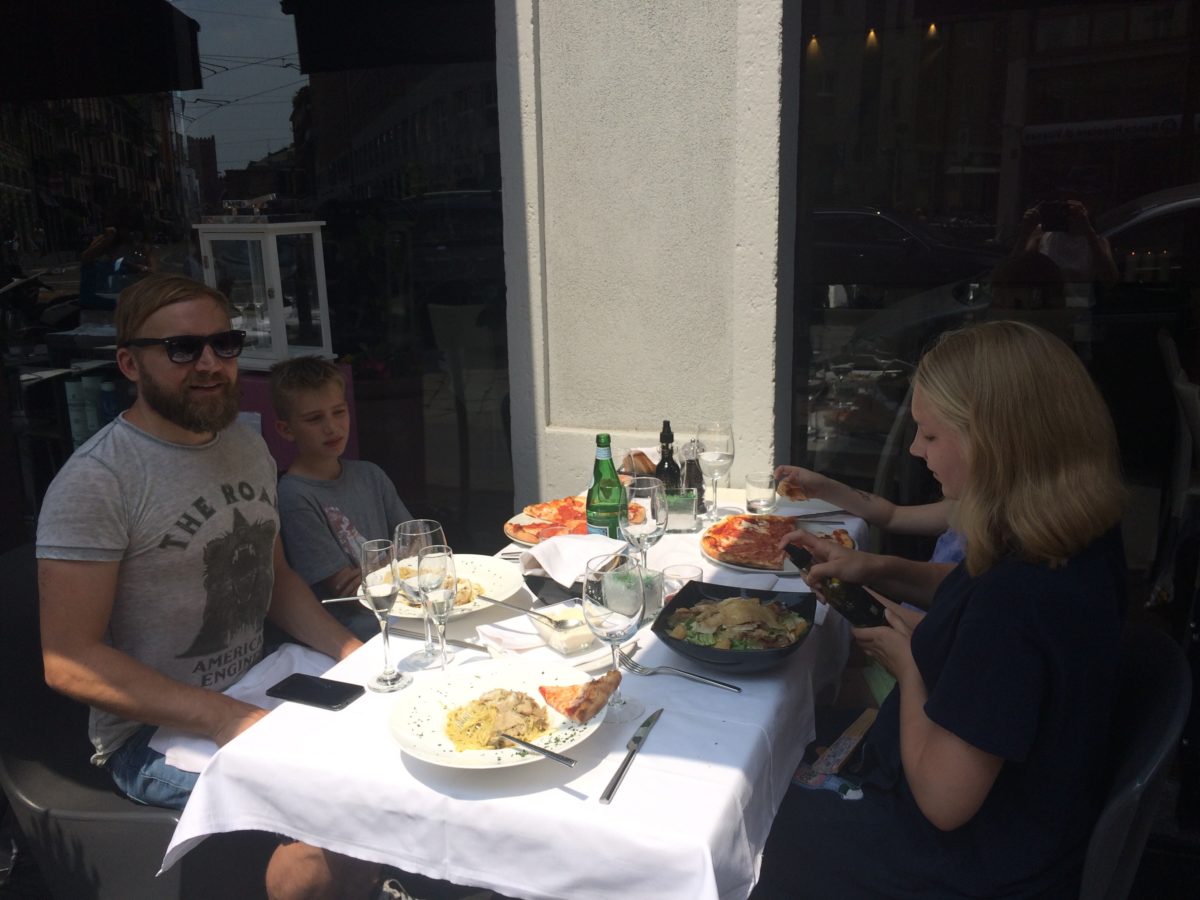 Sõimegi siis tunnikese restos, kuhu mahtusime oma kohvritega ja ühe alkashikotiga (tüüpiline alkashikott, mis tegelt tavaline tugev poekott, kus meil oli eelmisest kohast kaasa võetud söök-jook) ja ülejäänud aja passisime kodu lähedal välikohvikus, kus tellisime kaks kohvi, mida siis jõime megaaeglaselt, et noh muidu imelik istuda, kui midagi ees ei ole, aga samas kõhud olid juba nii täis. Kui lõpuks tuppa saime, tegime värskenduse ja läksime linnapeale, nendega, kes kaasa tahtsid tulla 🙂